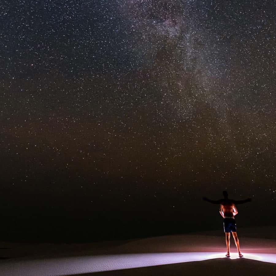 Momento tranquilo, perfeito para fotos e contemplação Experiência noturna nas dunas para observar o céu estrelado.